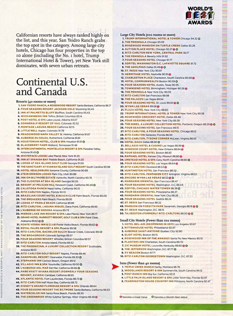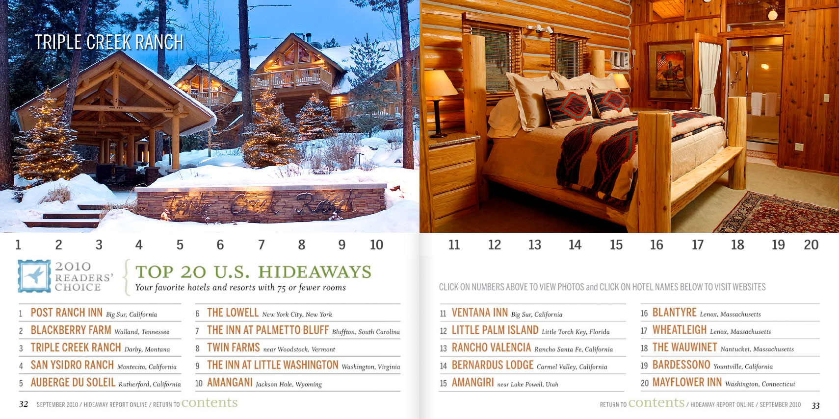 Andrew Harper's Hideaway Report September 2010, Top 20 U.S. Hideaways